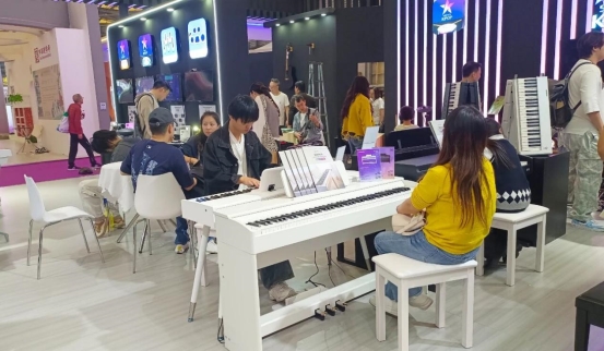 无弦智能吉他Jammate借助红外感应技术,无需复杂按弦即可模拟演奏,大幅降低新手入门门槛;SAMICK×MOORE联名智能电子吉他则深度融合专业演奏质感与智能教学功能,既满足乐手演出需求,又能通过内置课程辅助学习。特色声学乐器板块同样亮眼:新增的手指声学音乐键盘,以独特结构设计还原细腻自然的声学音色;卡槽拇指琴与星星拇指琴在传统工艺基础上优化音准控制与外观颜值,轻便易携的特性适配家庭练习、户外演奏等多元场景,成为年轻群体青睐的 “随身音乐伴侣”。