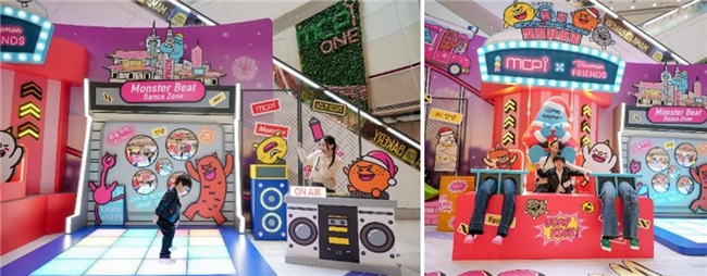 MCPOne 以標誌性遊樂場設施「跳樓機」為主題打卡點,顧客走進裝置裡與Sweet Monster朋友們一起體驗極限遊樂設施,定格錯覺設計,模擬身處高空急速下墜的瞬間,感受極速俯衝的刺激快感!而旁邊的毛毛聖誕樹,毛茸茸的質感既溫暖又吸睛。玩累了?不妨投入 Monster Beat DJ 音樂派對,踏上繽紛閃爍的dancing floor,腳踩地板,燈光會隨著節奏即時亮起,創造出炫目光影效果,讓你盡情釋放無限活力!此外,MCPOne更為社交媒體達人打造多組趣味「魚眼鏡」及街頭塗鴉風格打卡牆。魚眼鏡誇張變形效果為自拍注入強烈玩味;再搭配街頭風格背景,完美呈現 Sweet Monster 的「型」格態度,輕鬆拍出最具個性的聖誕開心Moment!
