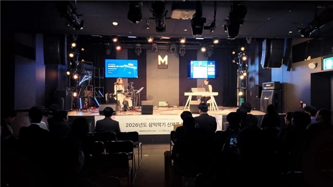 2025年12月22日下午17:00,“2026三益乐器新品发布会”在韩国首尔三益乐器大楼3F的M-POT HALL隆重举行。本次发布会以“乐器的新时代”为主题,聚焦KPOP音乐场景,隆重推出了SP-P88电钢和智能电鼓等系列新品。通过科技与乐器的融合创新,这些新产品为音乐爱好者带来了前所未有的全新体验。
