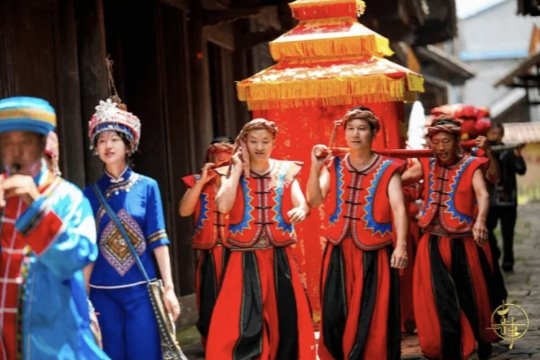 第二季开篇之作“以茶为媒”将镜头对准湖北省恩施州鹤峰县的土家族婚俗,以当地民众日常不可或缺的茶为叙事线索,串联起一段浪漫动人的爱情故事。片中,红花郎见证了土家族独具特色的哭嫁婚俗,那穿越群山与时光的文化印记,与红花郎的红火气质相得益彰,共同酿造出独属于这片土地的文化芬芳,在中华文明史上熠熠生辉。