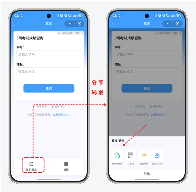 第五步,生成查询链接和二维码,分享给家长。设置完成后,点击底部的“发布”,系统会立即生成专属的查询链接和二维码,两种分享方式,大家可以任选其一。比如,把二维码保存到手机里,发到班级群,家长扫码后,输入自己孩子的姓名和学号,就能一键查询到专属的成绩,只能看到自己孩子的,看不到其他学生的,私密又安全;也可以把查询链接复制,发到班级群、家长群,家长点击链接,输入验证信息,就能查询,不用跳转其他页面,查完即走,特别便捷。